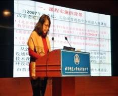 首先,由北京教育科学研究院基础教育教学研究中心赵薇主任做了《北京市普通高中通用技术课程实施的实践研究(2008年--2013年)》,她从以下五个方面介绍了北京市通用技术实施的情况。一是课程实施的背景,二是课程实施的目标,三是课程实施的途径、方法和策略,四是课程实施中遇到的困难和存在的主要问题,五是进一步促进北京市普通高中通用技术课程实施的建议。顾教授点评到:通俗的讲解让我们看到北京在近5年的通用技术成绩,看到了首都北京市通用技术的风采。他评价到北京的通用技术体现了以下特点:一是体现了教委推动课程的行政力度,二是体现了课程的强度,三是体现了课程建设的广度,四是体现了教学成果的厚度,五是体现了课程在社会和学校的美誉度。