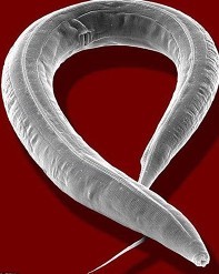 图:这种体型微小的线虫是秀丽隐杆线虫,由于它拥有与人类一样的20000多种基因,以及类似的肌肉组织和中枢神经系统,因而被选中来执行200英里太空旅行。