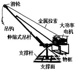 A.较大的支撑面与物框 B.大功率电机与金属吊钩