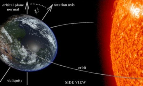 季节的产生源于行星围绕恒星公转时,自转倾角导致了恒星发出的光照强度呈现周期性的变化。比如,在北半球的冬季时,地球的自转轴指向远离太阳方向,直射点出现在南回归线。倾斜的自转轴使得太阳光照射到地表时与大气存在夹角,有效削弱了部分能量,使光照分布显层次感,且全天日照时也有所变化。与此同时,直射点在南半球使得日照时间更长。太阳引力的拖拽效应在具有自转轴倾角的地球表面表现得更加充分。总体而言,地球自转轴倾角使地表温度均匀分布,最高温度与最低温度的差值不会超过200华氏度。